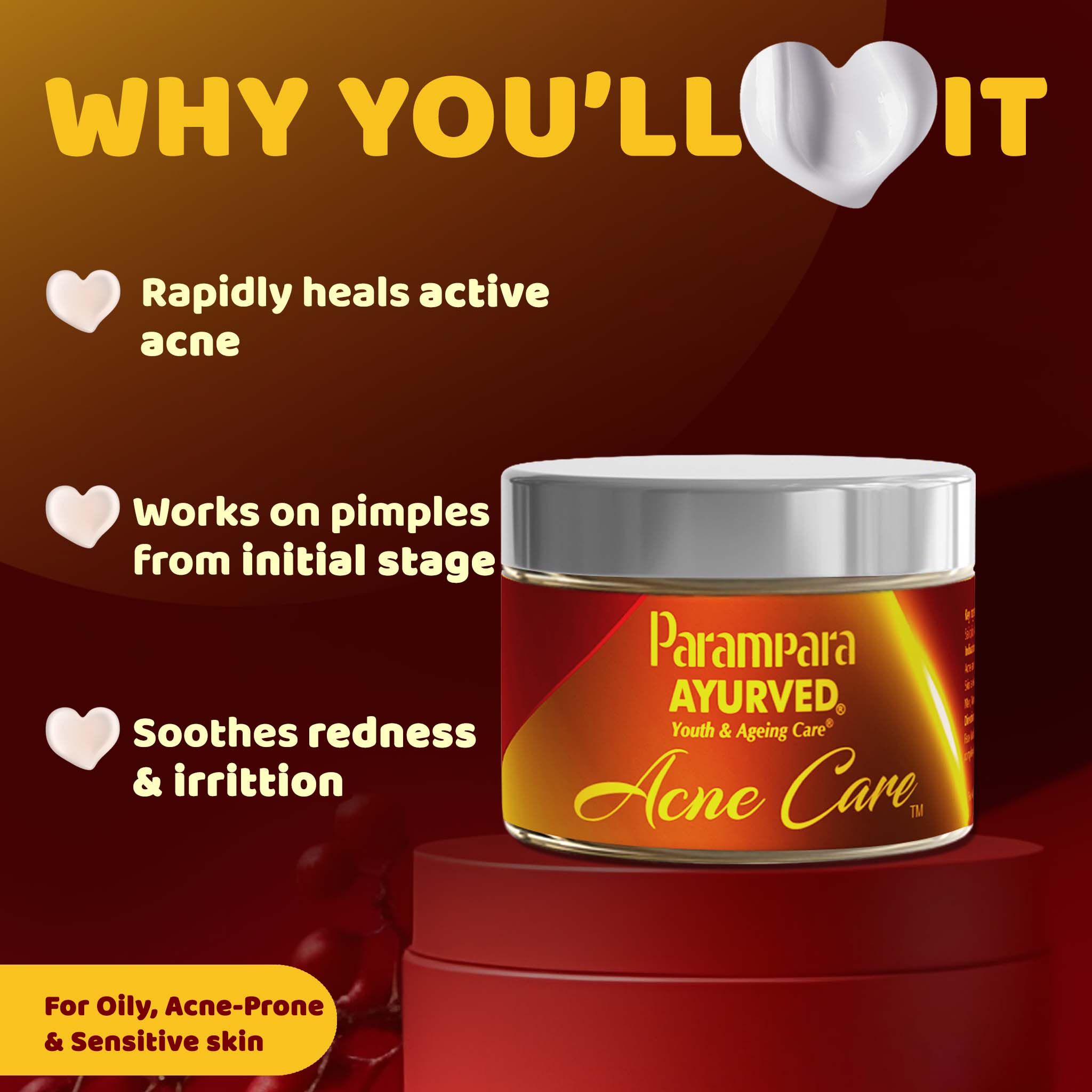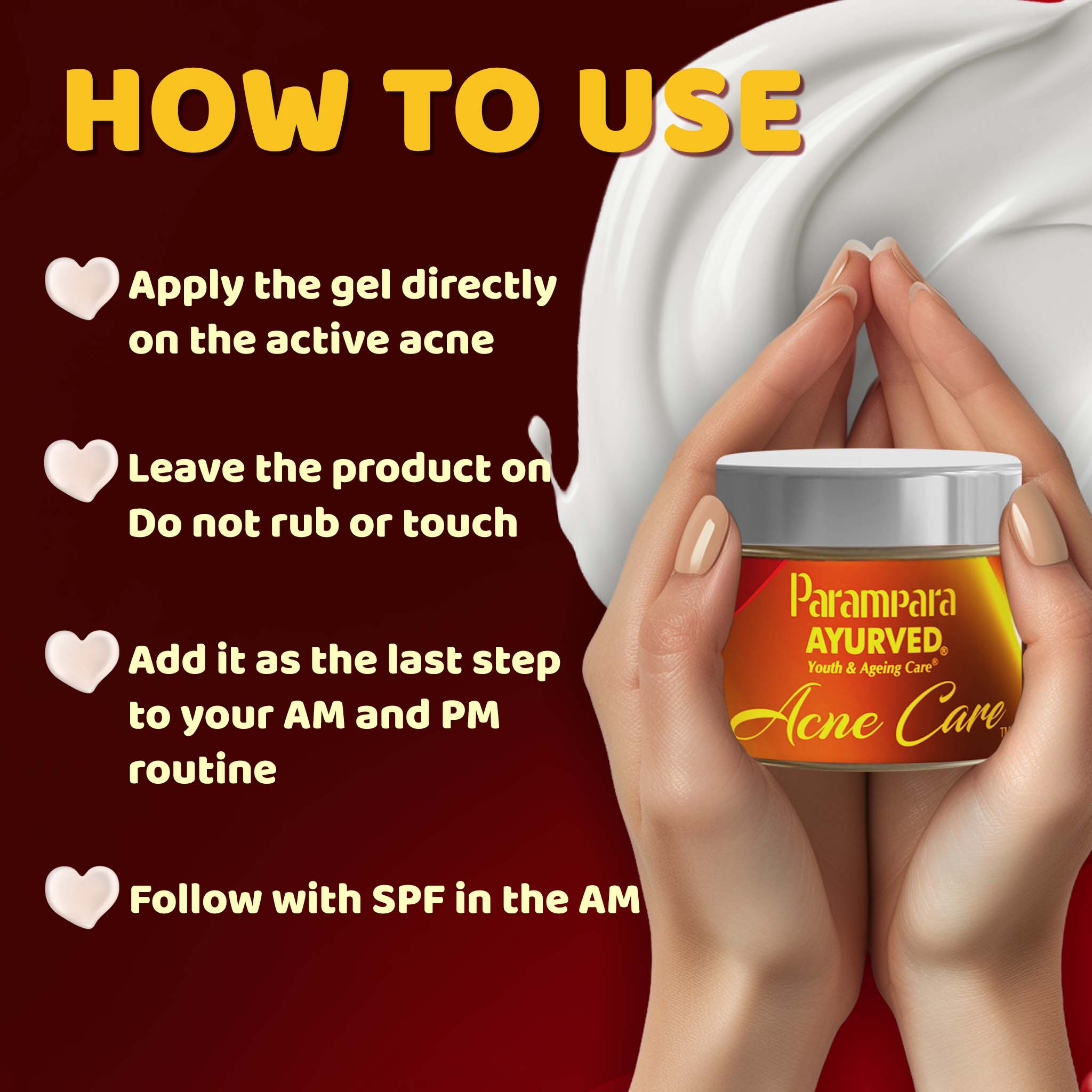 Parampara Ayurved Acne Care Gel is a fast-acting Ayurvedic solution formulated to target pimples, blemishes, and frequent breakouts while remaining gentle on the skin. Enriched with 2% Salicylic Acid and powerful herbal extracts, this lightweight gel works deep within the pores to reduce acne, control excess oil, and support clear, healthy-looking skin. Its non-greasy, quick-absorbing texture makes it suitable for all skin types, including oily and acne-prone skin.