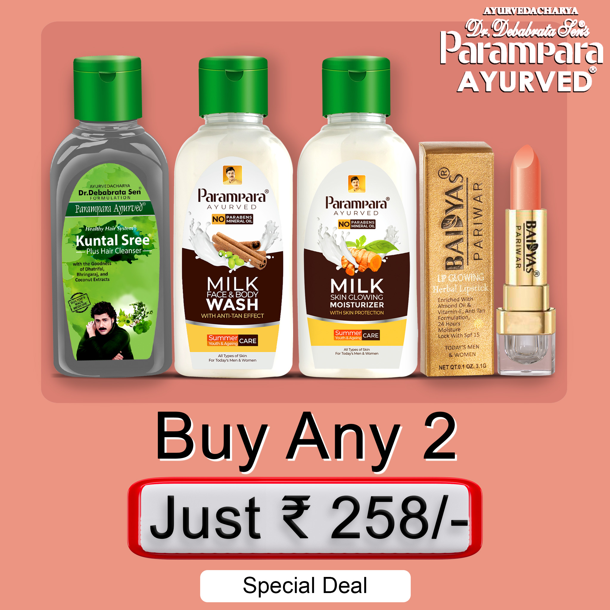 Pamper yourself with daily essentials that care for your hair, skin, and lips — all at an amazing price! Choose any two for just ₹258 and enjoy natural goodness every day.