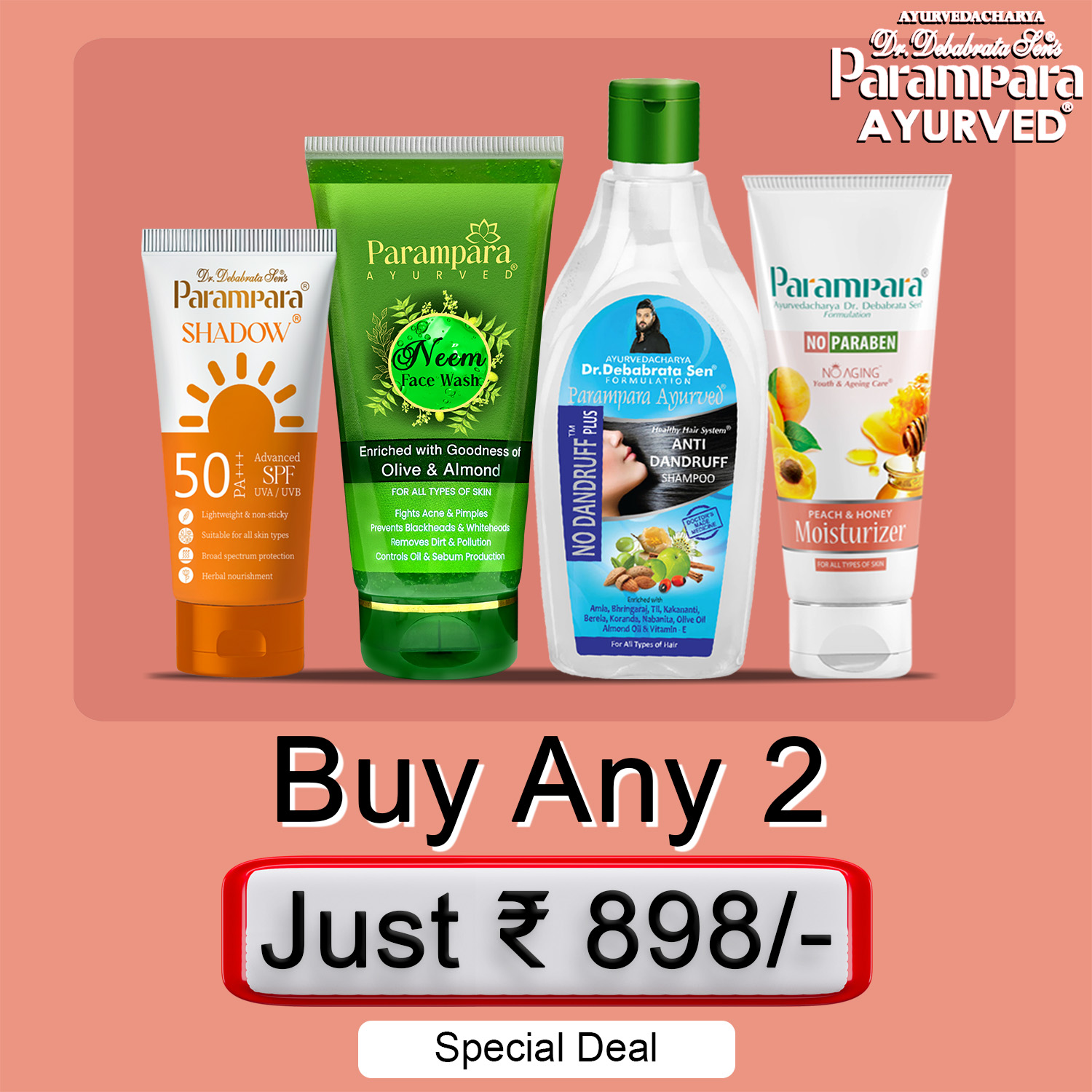 Shield, cleanse, and nourish your skin and hair with this essential care combo. Choose any two high-quality products for just ₹898 and enjoy complete protection and hydration every day.