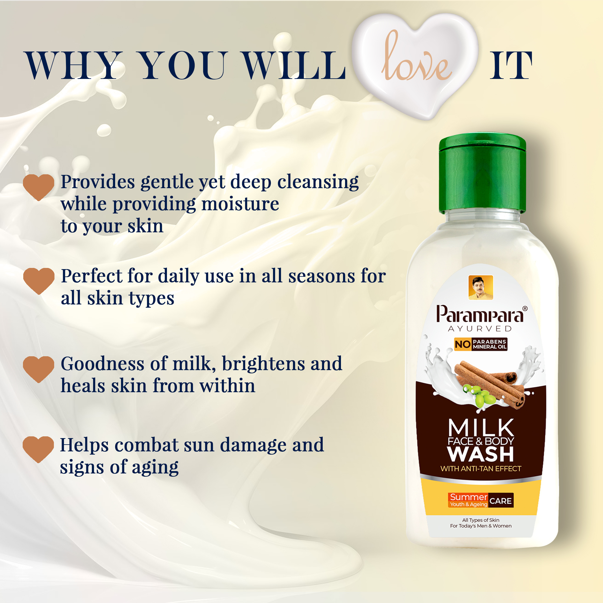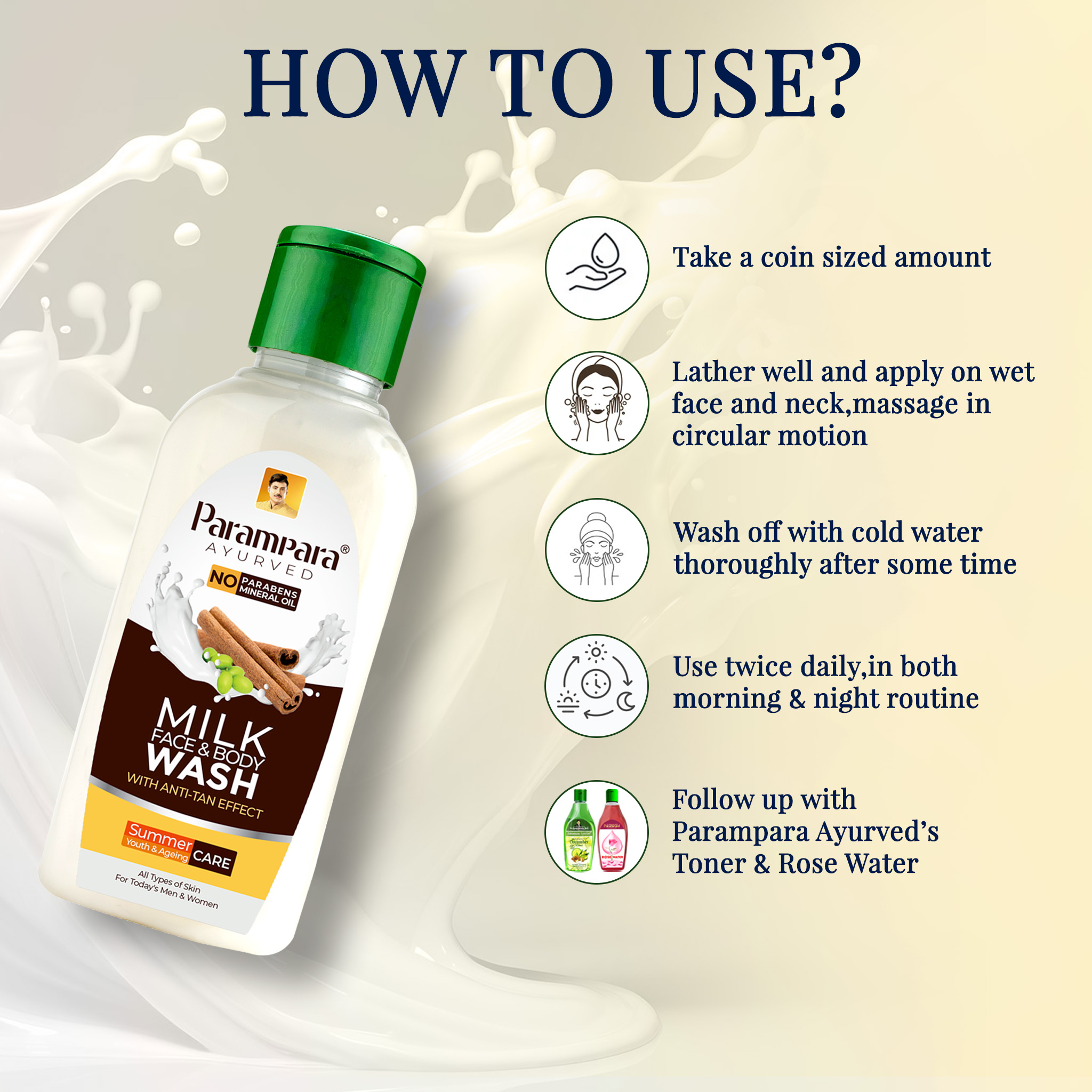Free from harsh chemicals, this mild yet effective cleanser is suitable for all skin types and perfect for daily use. Indulge in the essence of Ayurvedic beauty and unlock glowing, healthy skin with Parampara Ayurved Milk Face & Body Wash.