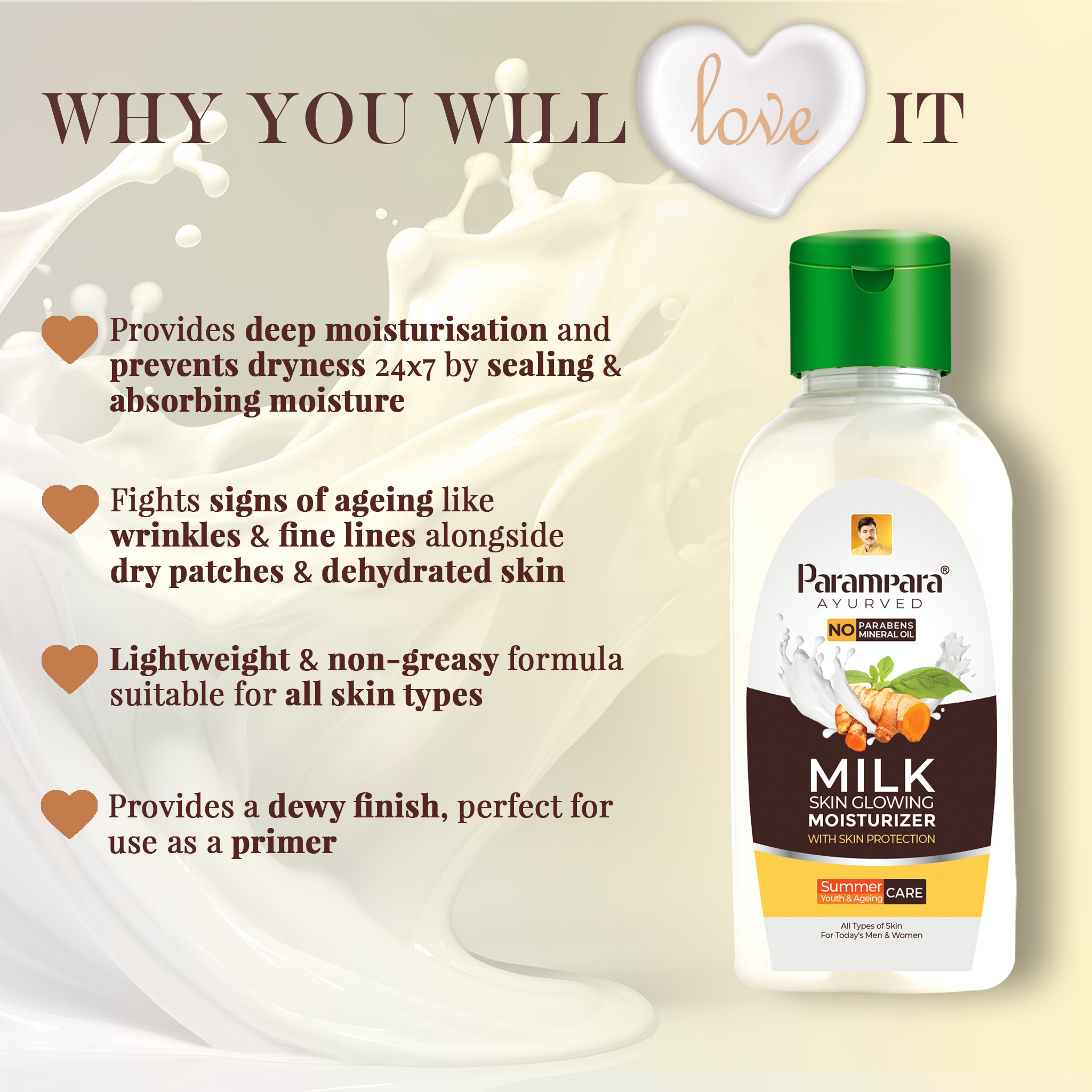 Transform your skincare routine with Parampara Ayurved Milk Skin Glowing Moisturizer – your go-to solution for hydrated, radiant, and naturally beautiful skin!