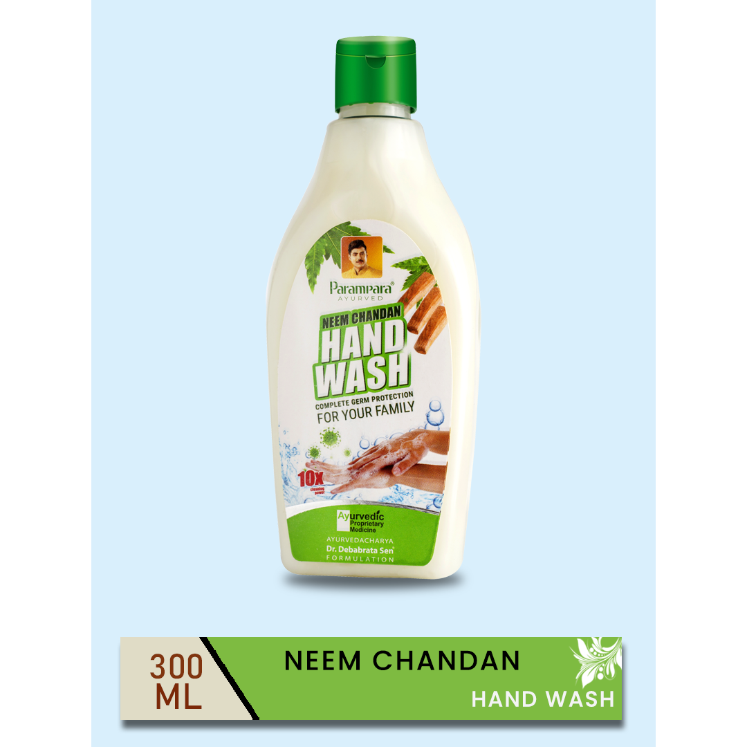 Parampara Ayurved Neem Chandan Hand Wash is a premium antibacterial and moisturizing hand wash designed to provide complete germ protection while keeping your hands soft and nourished. Infused with the goodness of neem leaf and sandalwood (swet chandan) extracts, this Ayurvedic formula deeply cleanses and purifies the skin, removing dirt, impurities, and illness-causing germs.
