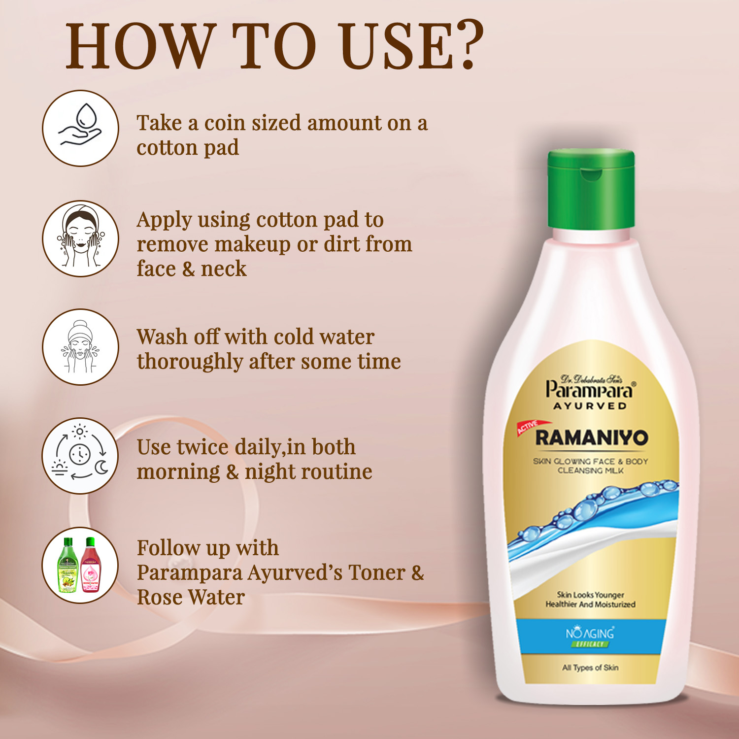 Easy to use as part of your daily skincare routine, Parampara Ayurved Ramaniyo Cleansing Milk will leave your skin feeling clean, hydrated, and radiant, making it the perfect addition to any skincare regimen.