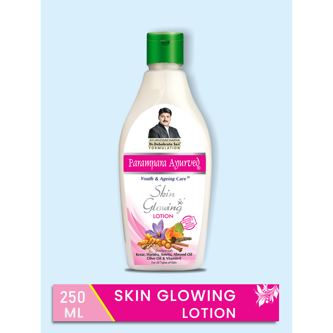 Enhanced Radiance: Infused with Ayurvedic ingredients like Keshar and Harida, our Skin Glowing Lotion is designed to illuminate and enhance your natural radiance, giving your skin a subtle, luminous glow.