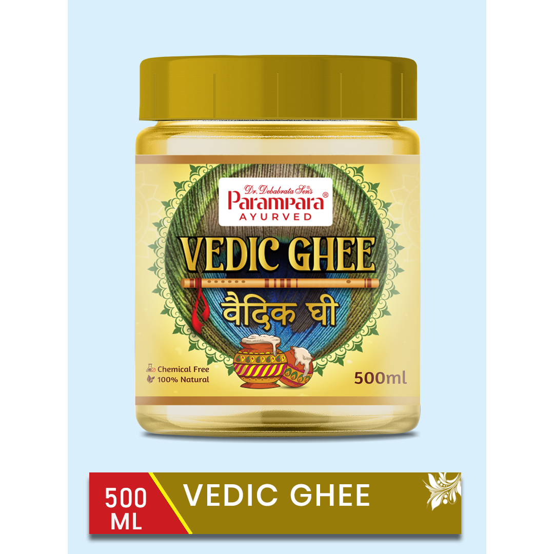 Contains no Artificial Flavour or Preservative. PARAMPARA AYURVED VEDIC GHEE processed from Pure Milk & 100% Natural. It can be used for cooking, directly with food and Holy Purpose. KEY INGREDIENTS: Vitamin A, Energy, Protein.