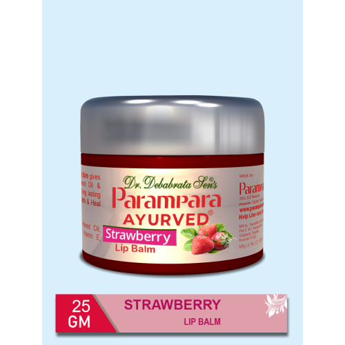 Parampara Ayurved Strawberry Lip Balm | Herbal Lip Care Gel | Enriched with Strawberry Aloe Vera & Almond Oil | Long Lasting Moisturizer | Soft & Smooth Lips | 25g